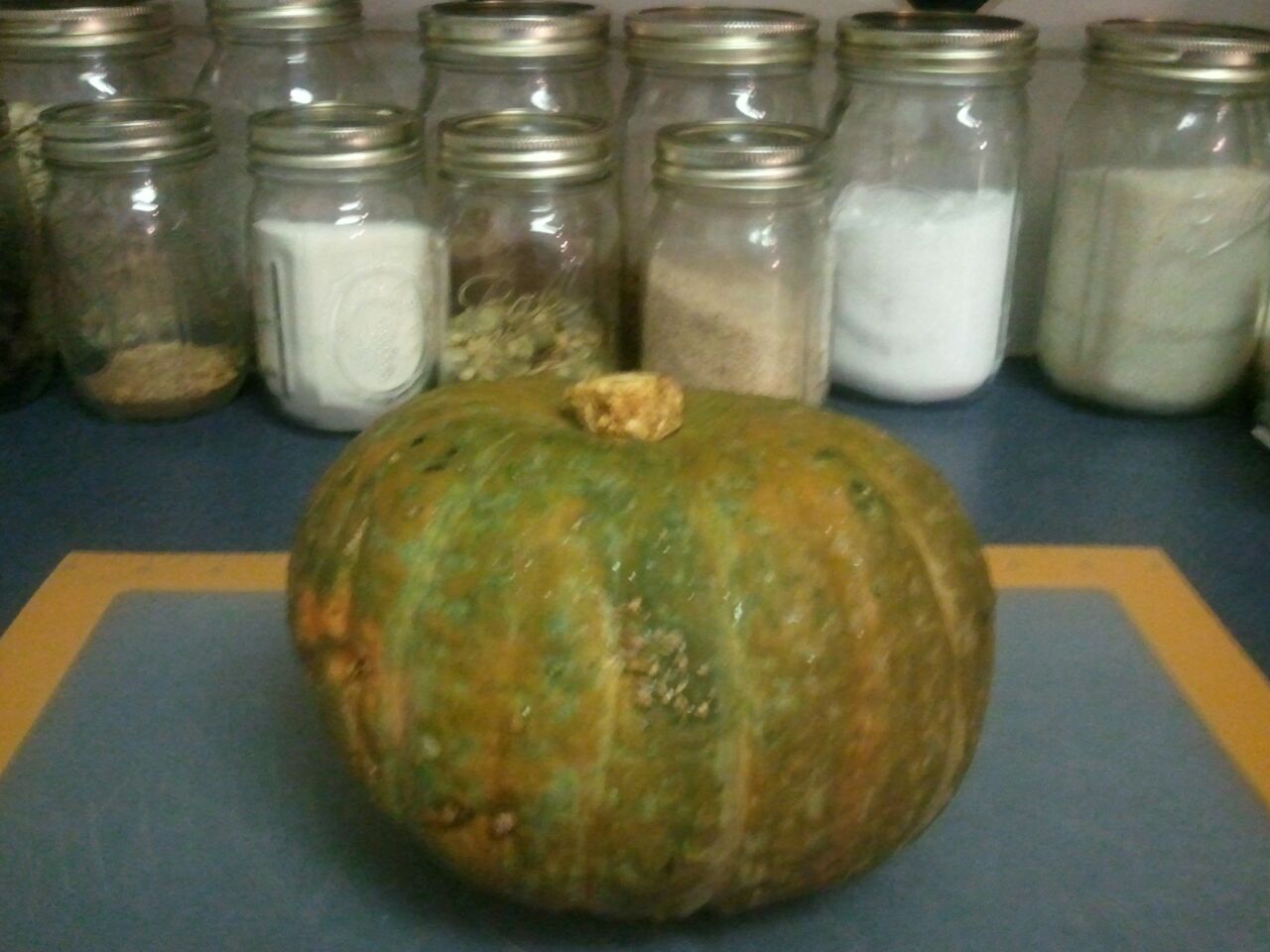 The recipe calls for you to put the squash in cubes in a pan, where you saute and then boil it and so, normally I just plop the whole thing in water in the oven but I thought, ok, I'll try to peel and cut it up. Let me just say - total p.i.t.a! So much of a pita that I ...