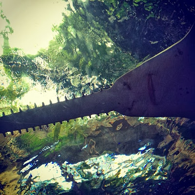 This is a kind of cool pic of a sawfish in one of those "tunnels" with sharks and other things.